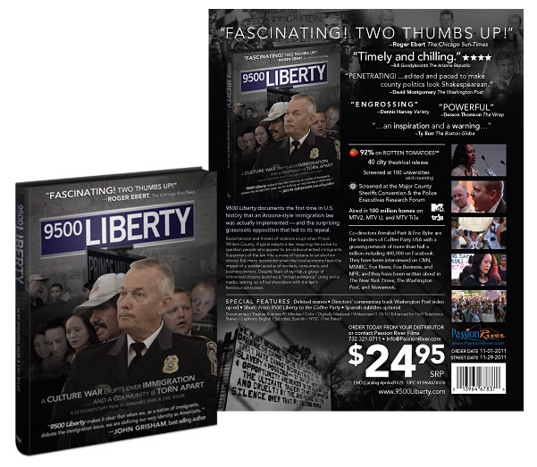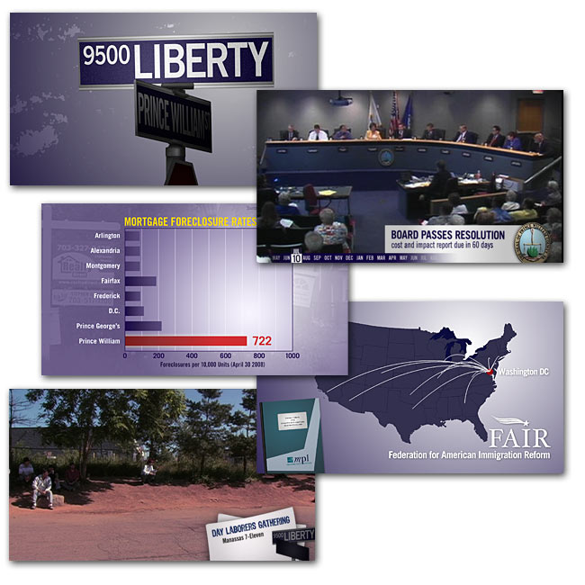 Design the onscreen titles and information graphics for 9500 Liberty, a documentary film that integrates names, places, dates, organizations and statistical information as a critical part of the narrative. Collateral materials such as a one-sheet (poster), DVD case and sell sheet also must be developed that convey the compelling stories and personalities that inhabit a film that might be incorrectly perceived as a dry story about local political process.