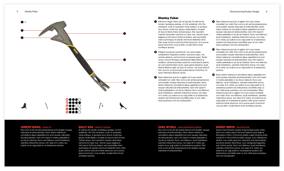 Develop the information architecture, interior layout and book cover for Deconstructing Product Design, a title co-authored for an audience of design-savvy readers. A tie-in web site is also required to promote the book and solicit visitor commentary for potential inclusion in the print edition.